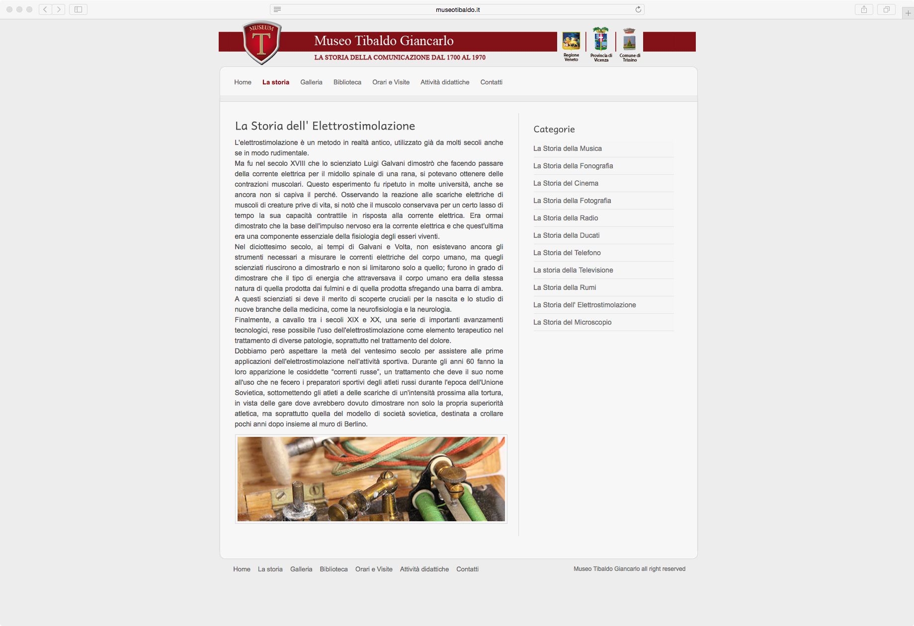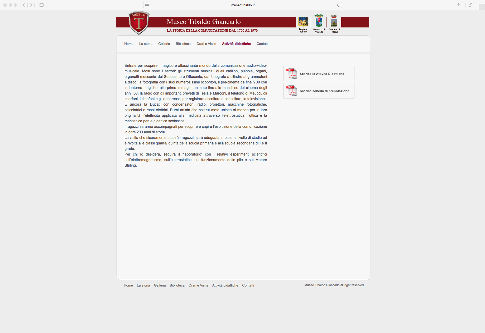 Nel website realizzato per il MUSEO Tibaldo Giancarlo vengono date informazioni riguardo gli orari, le attività e le esposizioni tramite testi e gallerie di immagini.